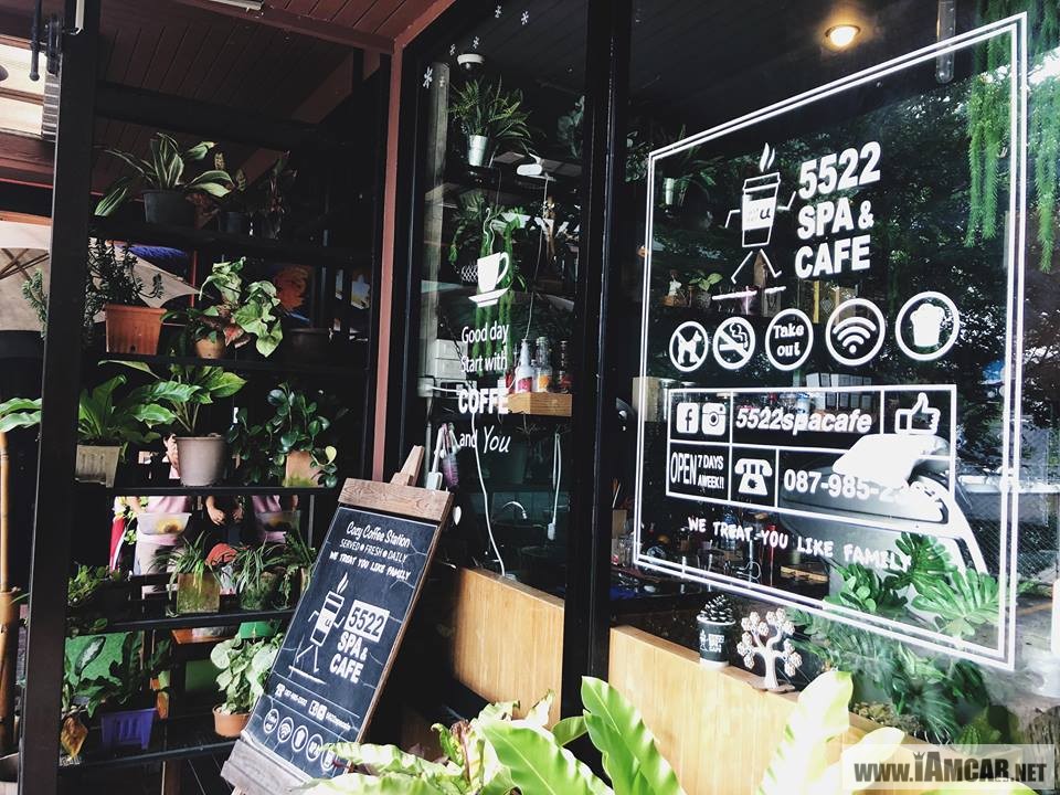 ภายในร้าน “5522 Spa & Cafe” ตกแต่งได้ฟิวธรรมชาติสุดๆ ที่นั่งถูกจัดสรรขึ้นมาได้ลงตัวและใช้พื้นที่ทุกตารางนิ้วได้ดี ดูกลมกลืน มีที่นั่งทั้งแบบ In door และ Out door มีทั้งโซนที่เป็นชิงช้า และโต๊ะตั้งเม้าท์มอย หลังร้านยังเป็นวิวสวนผัก ผลไม้ของชาวบ้าน มีสะพานไม้ให้เดินข้ามน้ำ และเรือลอยรำอยู่ให้ได้ลงไปพายได้ นอกจากนี้ที่ร้านยังมีสปาไว้บริการด้วยนะคะ