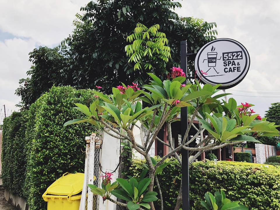 “5522 Spa & Cafe” เห็นชื่อแปลกๆ แบบนี้ เลข 5522 นั่นมาจากเลขที่บ้านของคาเฟ่ แห่งนี้นี่เองค่ะ เป็นคาเฟ่ในสวนสุดชิค บรรยากาศร่มรื่นมากๆ ด้านหลังติดบ่อน้ำที่เชื่อมจากท้องร่องสวนผลไม้ค่ะ