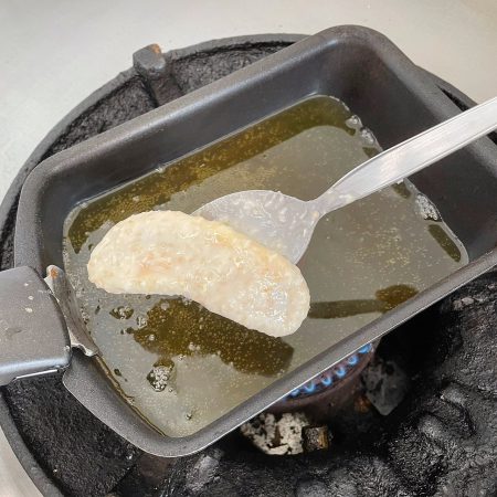3. เอากล้วยชุบแป้ง แล้วลงทอดได้เลย ใช้เวลาทอดสักพัก ก็ลองดูจนแป้งกับกล้วยสุกเหลืองได้ที่ ก็ยกมาซับไว้บนกระดาษซับมัน