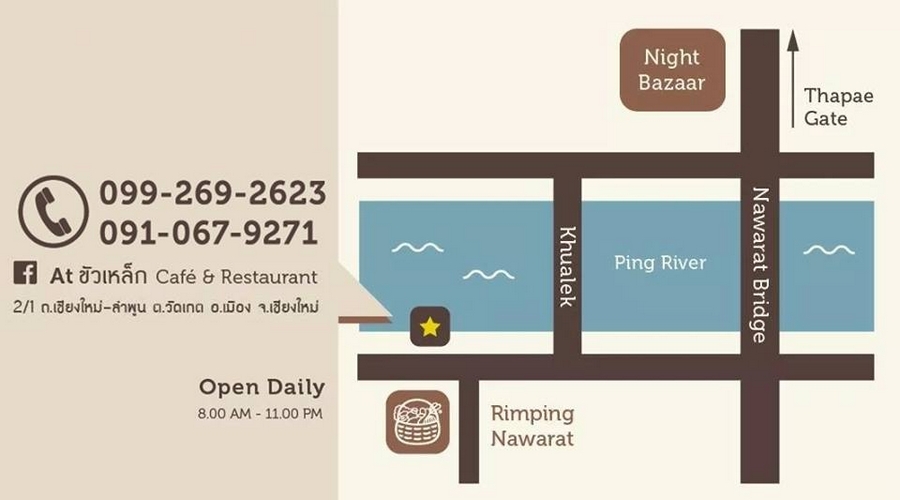 At ขัวเหล็ก Cafe’ & Restaurant ร้านอาหารน่ารักๆ ริมฝั่ง แม่น้ำปิง จุดชมวิวที่แนบชิดขัวเหล็ก ( สะพานเหล็ก ) ณ มุมหนึ่งของ เชียงใหม่ โดยเฉพาะช่วงค่ำๆ นั่งมองจากร้านจะเห็นขัวเหล็กที่ตกแต่งด้วยแสงไฟ ให้ความรู้สึกคลาสสิคโหยหาอดีตกันเลยทีเดียว