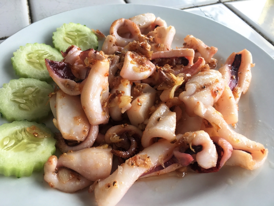 - หมึกทอดกระเทียม ร้าน “รสทิพย์” เขาเต่า