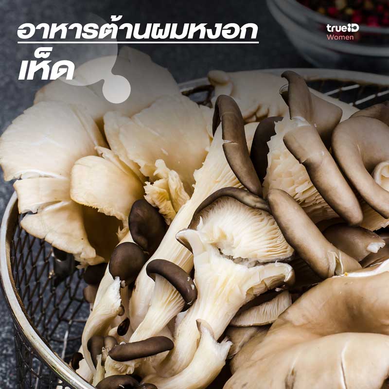 เห็ดถือว่าเป็นสุดยอดของ อาหารที่ช่วยบอกลาผมหงอก ได้ค่ะ เนื่องจากมีสารอาหารสำคัญต่อเส้นผมถึง 2 ชนิดด้วยกันนั่นก็คือ ซีลีเนียม ซึ่งซิลิเนียมในเห็ดนั้นช่วยบำรุงผมได้ แต่สารอีกตัวที่น่าสนใจไม่แพ้กันนั่นก็คือ แพนโทเธนิค (Pantothenic) ซึ่งถือเป็นธาตุอาหารสำคัญที่ช่วยรักษาเม็ดสีภายในผมทำให้ผมดำ และช่วยป้องกันผมหงอกได้อีกด้วยค่ะ