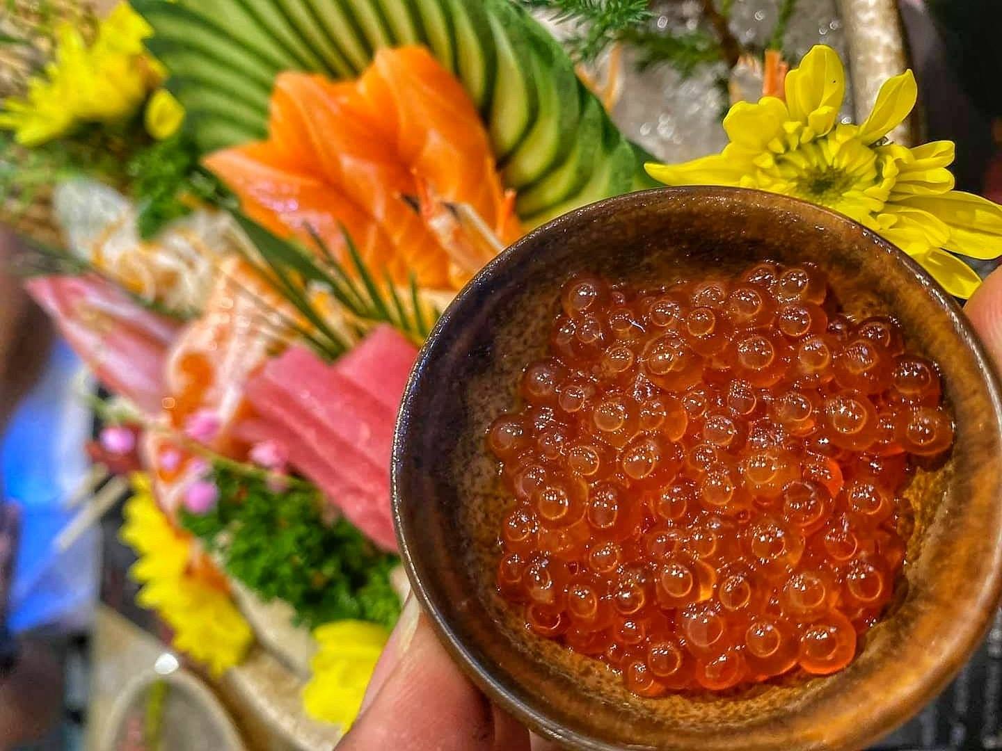 เนื้อวากิวA4 ตับห่านโฟวกราส์ ไข่ปลาแซลมอน มันปูทาราบะ เนื้อแซลม่อนแทรกมัน แบบสดๆ และอีกมากมาย กว่าร้อยเมนู เล่าไม่ไหวค่ะซิส ต้องมาลองกัน