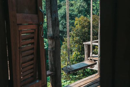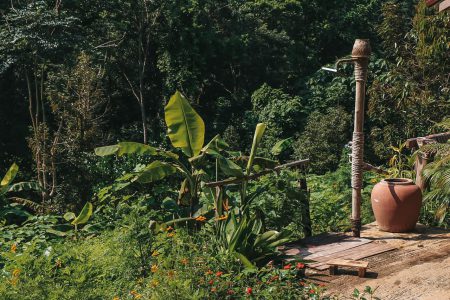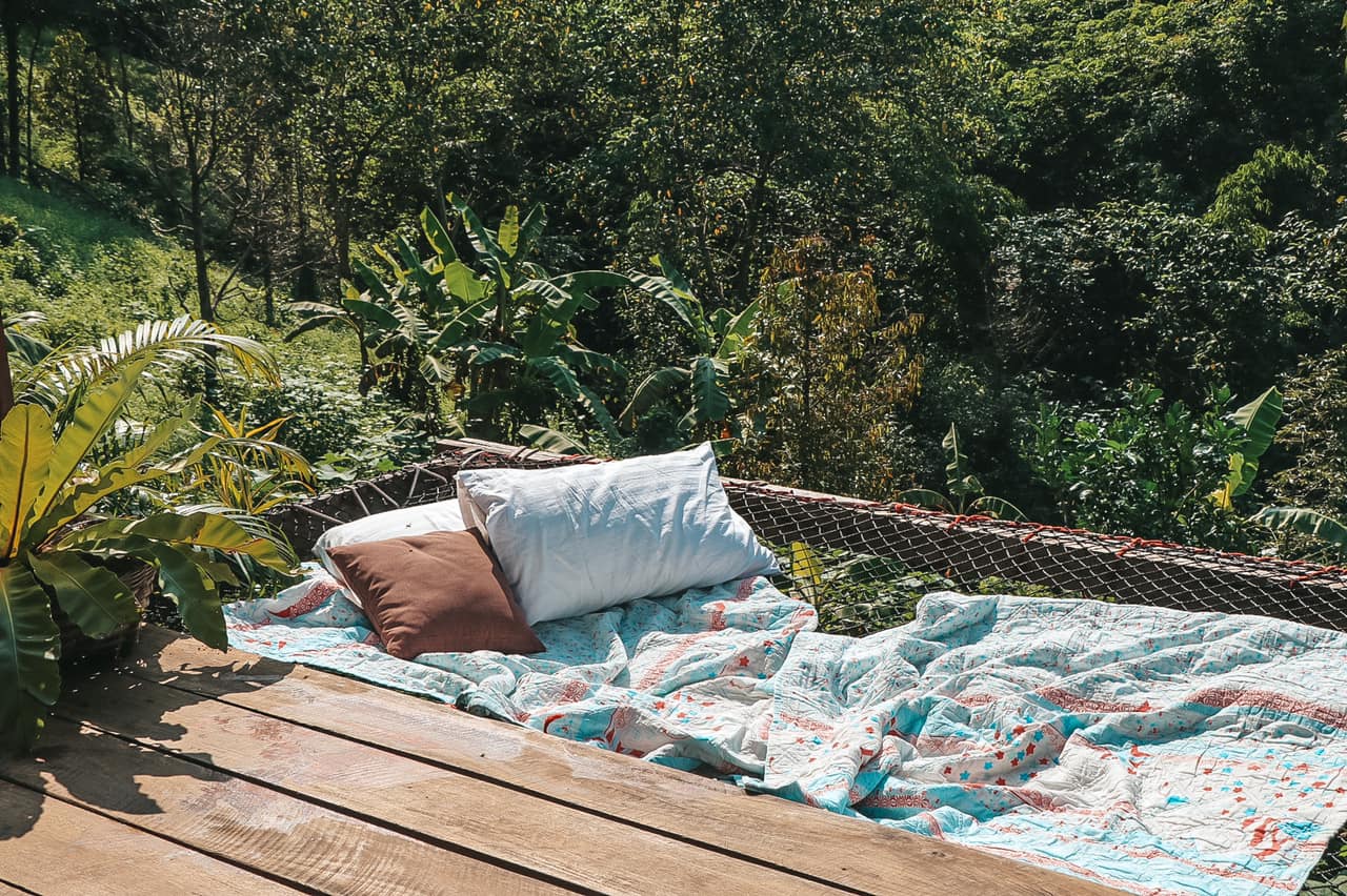 บ้านน้อยในป่าใหญ่ เป็นคำจำกัดความที่เหมาะสมที่สุดสำหรับที่นี่เลยค่ะ โฮมสเตย์นาต้นจั่น จ.สุโขทัย บ้านที่เราพักชื่อว่า “บ้านกลางดอย” นะคะ จะอยู่ลึกกว่าบ้านพักหลังอื่นๆในชุมชน สัญญาณโทรศัพท์อ่อนมาก แต่นั่นแระมันทำให้เราได้พักผ่อนสมองอย่างแท้จริง อยู่กับธรรมชาติ นุ่งผ้าถุงอาบน้ำกลางแจ้งจากฝักบัวเย็นๆ มันฟินมาก