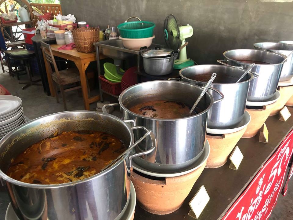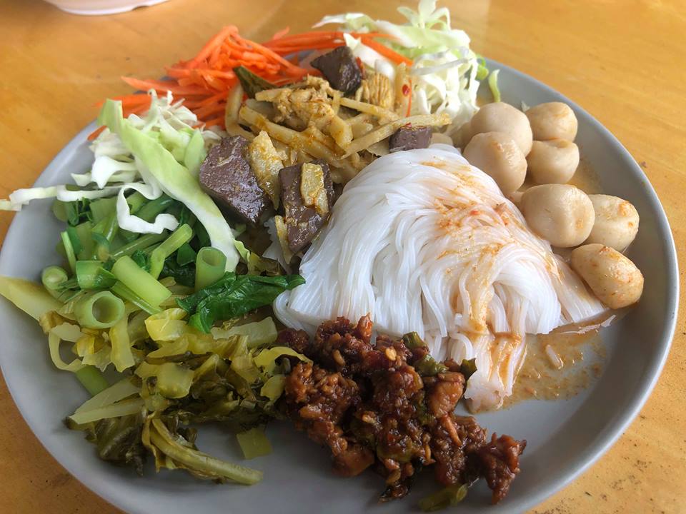 เราไปดูในส่วนของขนมจีนก่อน มีหลากหลายน้ำให้เลือก รสชาติจัดจ้าน ทั้งน้ำยากะทิ น้ำเงี้ยว น้ำพริก แกงเขียวหวานเป็นต้น มาพร้อมกับเครื่องเคียงผักสดนานาชนิด
