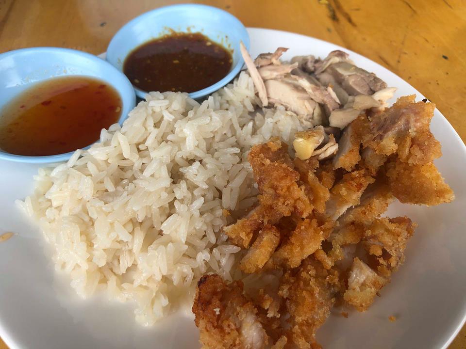 สำหรับข้าวมันไก่ ก็มีให้เลือกทั้งไก่ทอด ไก่ต้ม และไก่แซ่บ เราสามาถตักข้าวตักไก่บริการตัวเองได้เลย ตัวเด็ดอยู่ที่น้ำจิ้ม อร่อยเกินราคาจริงๆ ค่ะ