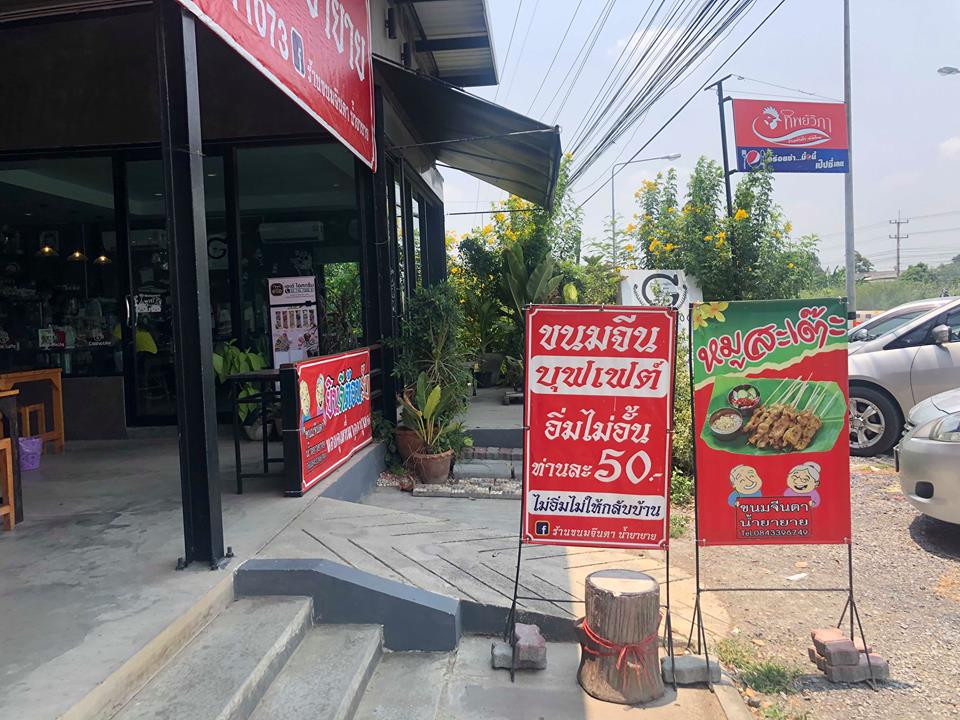 ร้าน ขนมจีนตา น้ำยายาย บอกเลยว่าเด็ด ! มีเป็นบุฟเฟ่ต์ให้เลือก ทั้งขนมจีน และข้าวมันไก่ ในราคา 50 บาท เท่านั้น !!! โดยมทางร้านมีสโลแกนว่า ไม่อิ่มไม่ให้ออกจากร้าน