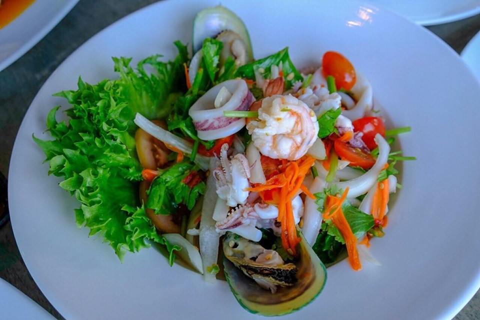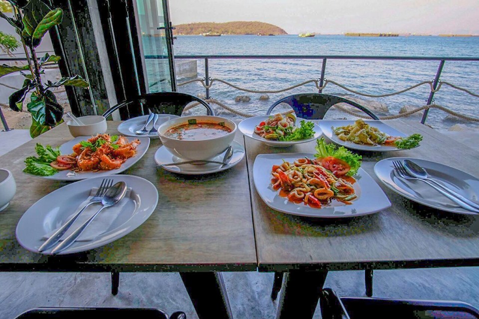มาถึงวันแรก เราไม่ทำกิจกรรมอะไร เยอะ อยากจะพักนอนชิวๆ ซึมซับบรรยากาศริมทะเล วันนี้เราจึงเลือกทานอาหารเย็นกันที่ร้าน “กะลาสี” ซึ่งเป็นส่วนหนึ่งของที่พักเรานั้นเองค่ะ คนที่ไม่ได้พักที่นี่ก็สามารถเข้ามาทานอาหารกันได้นะคะ เปิดบริการ ตั้งแต่ 17.00 – 21.30 น.ร้านนี้ติดริมทะล บรรยากาศชิวมาก เมนูของเราวันนี้คือ กุ้งซอสมะขาม ต้มยำทะเล ยำรวมมิตรทะเล ปลาหมึกผัดไข่เค็ม กระหล่ำผัดน้ำปลา และไข่เจียวหมูสับค่ะ บอกเลยว่าอาหารรสชาติดีเวอร์ ยำก็แซ่บถึงใจ ต้มยำก็เข้มข้น อาหารอร่อยท่ามกลางบรรยากาศริมทะเล จะหาอะไรฟินได้กว่านี้อีก หลังจากอิ่มท้องแล้ว เราก็สั่งเครื่องดื่มมานั่งชิวต่ออีกสักพัก กับ ไหมไทย หรือ โมจิโต้ ถือเป็นการตบท้ายมื้อพิเศษได้อย่างสวยงามจริงๆ