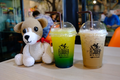 หลังจากเที่ยวกันจนพอแล้ว เราก็หาที่หลบร้อนกันที่ร้าน Flower Blue ดูเหมือนจะเป็นาเฟ่หนึ่งเดียวในเกาะที่ใครมาเที่ยวเกาะสีชังก็ต้องแวะมาเช็คอินที่นี่ เครื่องดื่มอร่อย แอร์เย็นๆ ดับความร้อนในร่างกาย นั่งชิวสักพักเราก็ไปเช็คเอ้าท์และกลับกรุงเทพกันค่ะ