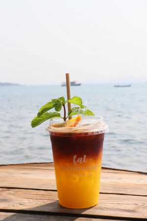 ก่อนที่จะแวะคาเฟ่ชื่อว่า Fat Submarine Cafe เพื่อนั่งรอเวลาข้ามเรือกลับ ร้านนี้วิวดีมากกก มีมุมถ่ายรูปเยอะ อยู่ติดทะเล ใกล้หาดหน้าบ้านจ้า