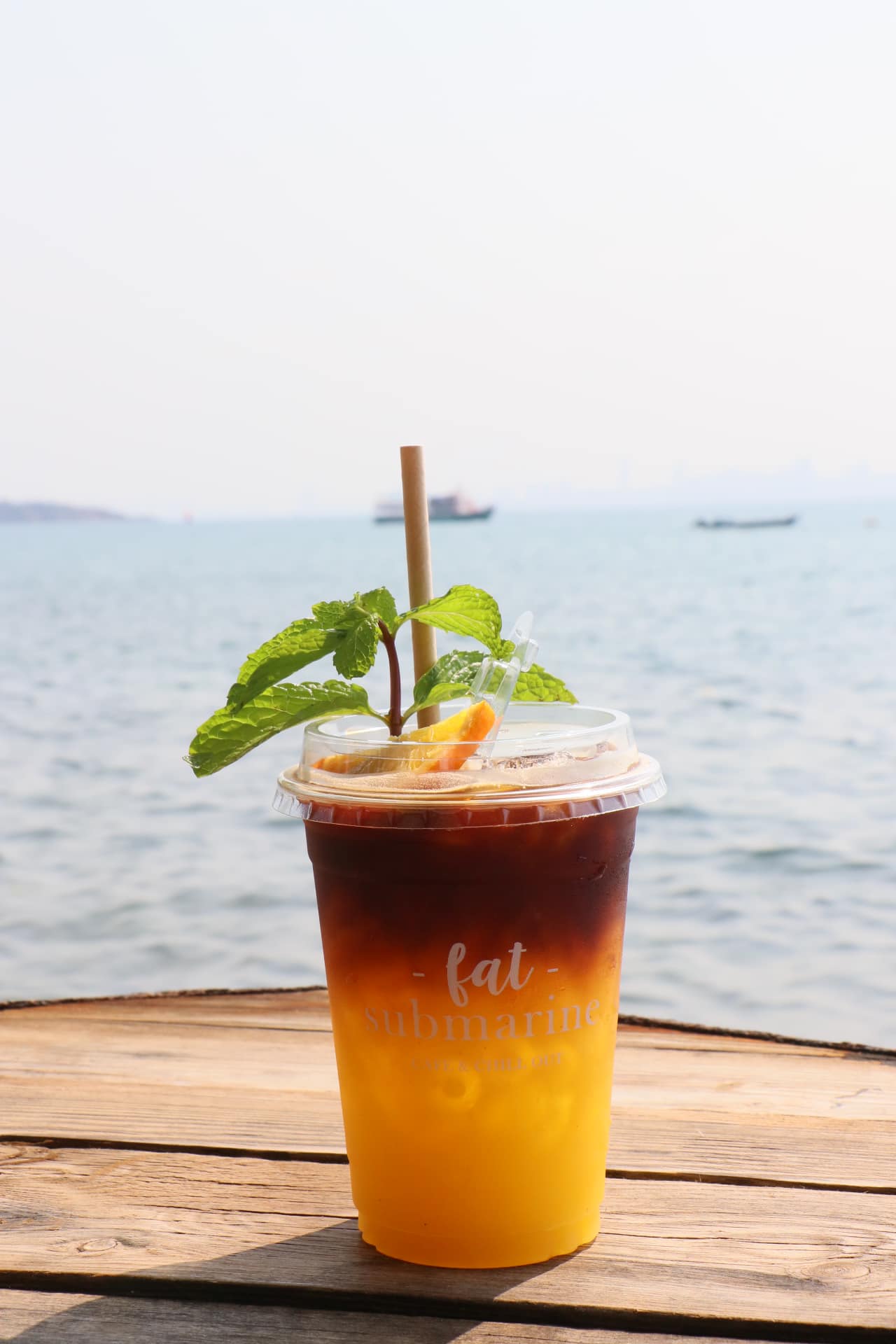 ก่อนที่จะแวะคาเฟ่ชื่อว่า Fat Submarine Cafe เพื่อนั่งรอเวลาข้ามเรือกลับ ร้านนี้วิวดีมากกก มีมุมถ่ายรูปเยอะ อยู่ติดทะเล ใกล้หาดหน้าบ้านจ้า