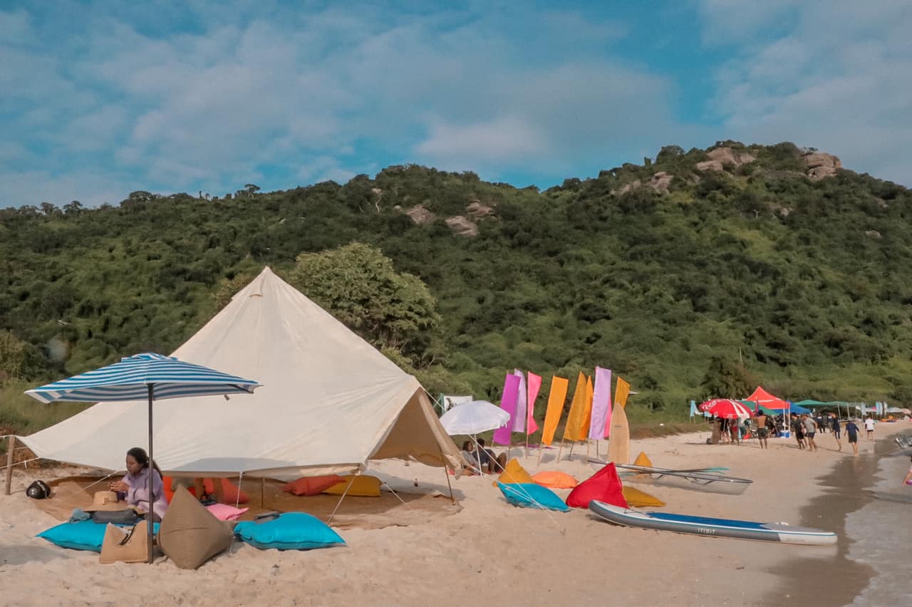 แถมยังมีกิจกรรมต่างๆให้เล่น ไม่ว่าจะเป็น เล่นกับน้องหมูแสนซน พายเรือคายัคใส บอร์ดพาย ห่วงยาง พร๊อบๆต่างๆจัดมาให้แบบจุกๆ สำหรับคนที่ไม่ชอบเล่นกิจกรรมอะไรมากก็สามารถนั่งชิวๆ ริมทะเล ในเต้นท์กระโจมก็ได้เช่นกัน