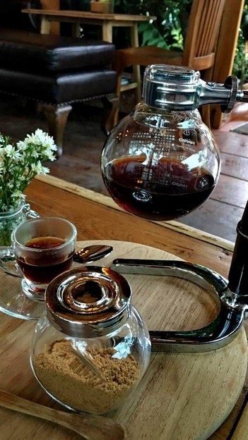 “จึงเป็นที่มาของการชงกาแฟที่มีกรรมวิธีการชงแบบง่ายๆ อย่างกาแฟเราก็เลือกใช้กาแฟที่คั่วในหม้อดินจากกลุ่มบ้านเรียน ซึ่งทำงานกับกลุ่มเด็กปะกาเกอะญอ และใช้ Mocha pot กับ Syphon ที่เป็นเครื่องทำกาแฟ Espresso แบบที่ให้ความรู้สึก Homey มีเค้กอร่อยๆ จากร้านชาร์โคล มีน้ำอัญชันมะนาวสีสวยที่เลือกเติมความเปรี้ยวได้เองด้วยน้ำมะนาวช๊อต หรือจะเป็นเครื่องดื่มจำพวกชาที่ทานเข้าคู่กันได้ดีกับข้าวแต๋นชิ้นเล็กๆ ที่วางไว้ให้เลือกหยิบทานเล่น”