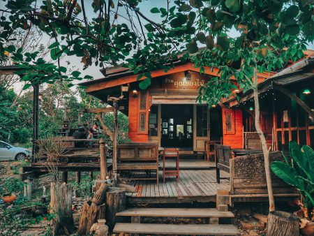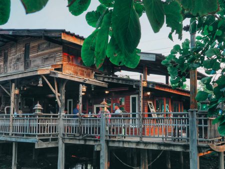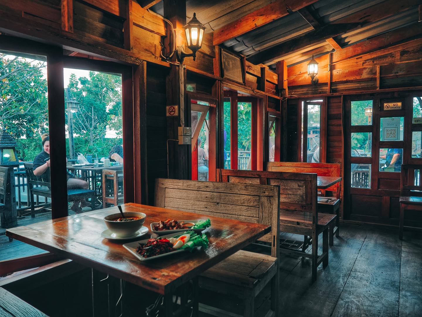 บรรยากาศร้าน ตกแต่ง และสร้างขึ้นด้วยไม้เรือ เก่า สูงโปร่ง ยกใต้ถุนสูง อารมณ์เหมือนบ้านไม้ริมคลอง ที่ยิ่งทำให้คิดถึง ความคลาสสิค ต้นไม้ใหญ่ปรกคลุม ได้ความร่มรื่น มุมถ่ายรูป เรียกได้ว่า มีให้ลงสตอรี่กันแน่นอน