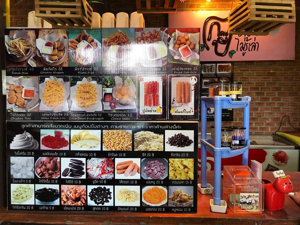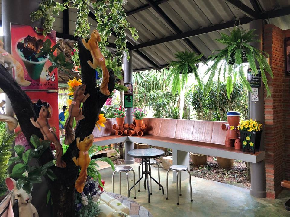 “โกปี๊ อร่อยไม่รู้เล่า” ร้านขนมที่มีเมนูให้เลือกมากมายหลายอย่างทั้งเครื่องดื่ม และขนม เรียกได้ว่าเมนูอลังการเต็มฝาผนังให้เลือกกันตาลายเลยทีเดียว ตัวร้านโปร่ง ให้อารมณ์คล้ายๆ เหมือนสวนอาหาร มีต้นไม้ สบายๆ มีซุ้มๆ เป็นที่นั่ง เวลาจะสั่งขนมหรือเครื่องดื่มให้ไปสั่งที่ Counter แล้วมานั่งรอที่โต๊ะ
