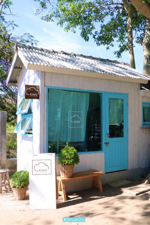 Kumo bake ร้านขนมสไตล์ญี่ปุ่น ร้านเล็กๆ น่ารัก ที่มาในโทนสีฟ้า-ขาว เข้ากับชื่อร้าน kumo ที่แปลว่าก้อนเมฆ มีมุมถ่ายรูปคิ้วท์ๆ
