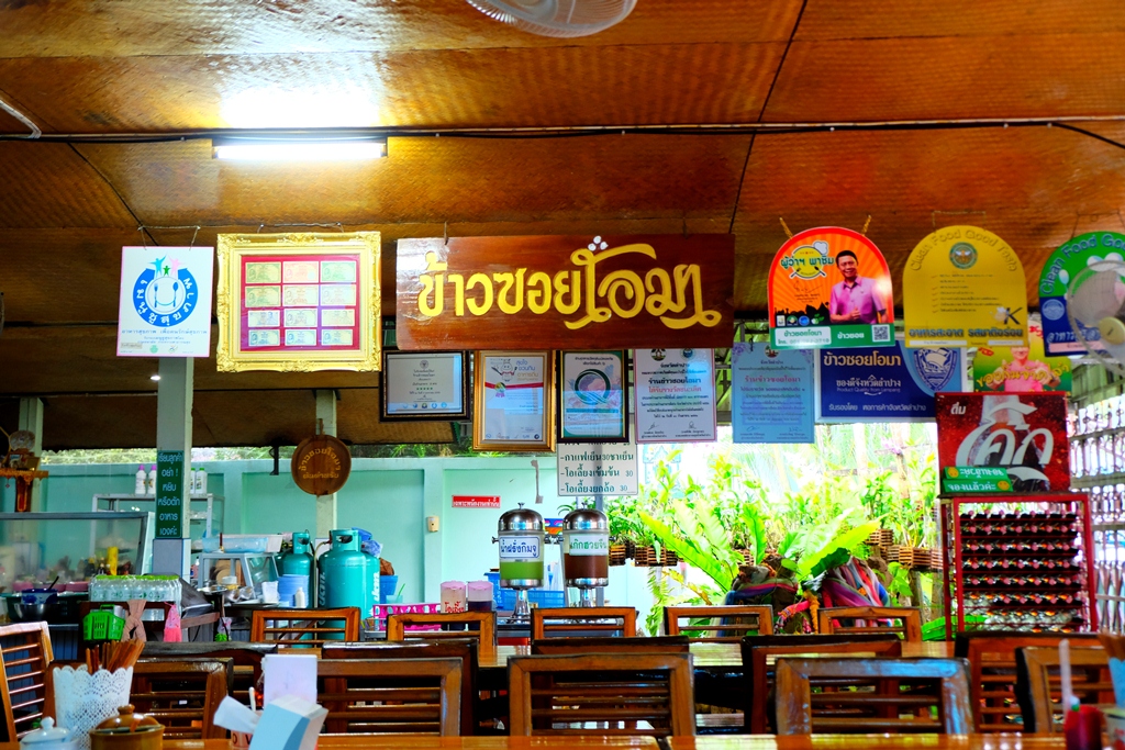 พูดถึงอาหารเหนือต้องมีเมนู ข้าวซอย อยู่หนึ่งในนั้นแน่ๆ มาถึง จ.ลำปาง ทั้งที่ต้องไม่พลาดที่จะชิมข้าวซอยร้านดัง “ร้านโอ มา”ต้องบอกเลยว่าอร่อยสมสโลแกนที่ว่า “ต้นตำรับ หนึ่งเดียวในลำปาง” จริงๆค่ะ ร้านตั้งอยู่ 260 สุขสวัสดิ์ 2 อำเภอเมือง ลำปาง เจ้าของคือคุณป้าอุษา ซึ่งเปิดร้านมานานเกือบ 20 ปีเคล็ดลับ คือ รสชาติน้ำแกงที่นุ่ม เพราะใช้กะทิสด รสไม่จัดเกินไป มีทั้ง หมู เนื้อ ไก่ หมูแดง สารพัดข้าวซอย หากชอบเผ็ดเติมพริก ร้านนี้ไม่ได้เด่นเฉพาะเรื่องข้าวซอยนะคะขนมปังหน้าหมู และ หมูสะเต๊ะก็ลำแต้ๆ ร้านเปิดตั้งแต่เวลา 9.00-15.00 น. และหยุดทุกวันจันทร์ค่ะ