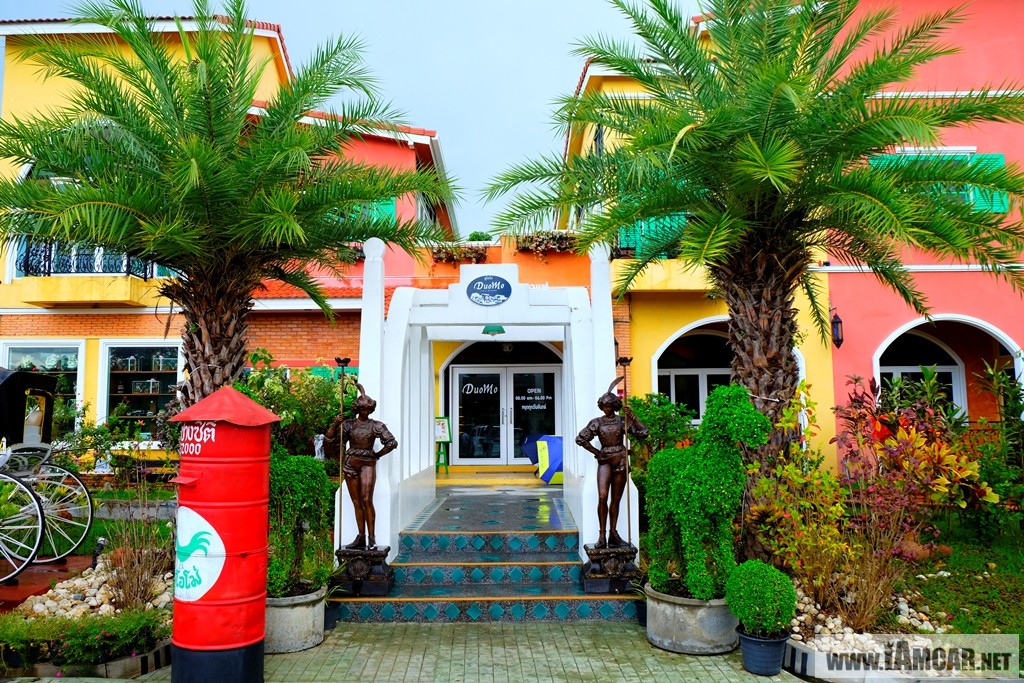 หลังจากพาไปฟินของคราวแล้ว ขอต่อของหวานรัวๆ ด้วยร้านแรก “DueMo Cafe” หรือเรียกว่า ดูโอโม่ คาเฟ่ ค่ะ เป็นร้านที่ สีสันสดใส ให้อารมณ์เหมือนอยู่แถวอิตาลี สำหรับใครที่ชอบถ่ายภาพแนะนำเลย รับรองว่าคุณจะได้ภาพกลับไปเป็นอัลบั้ม แน่นอน ร้านนี้ตั้งอยู่บนถนนเส้นเอเชียสายใหม่ ทางไปมหาวิทยลัยเนชั่น จ.ลำปาง ค่ะ หาไม่ยากอยู่ติดริมถนนเลย ร้านหยุดทุก วันจันทร์ เปิดตั้งแต่เวลา 8.00-18.00 น. สำหรับเมนูแนะนำคือ บิงชูรวมมิตรและโทสชาโคลค่ะ อร่อยมาก แวะไปตำกันได้ค่ะ