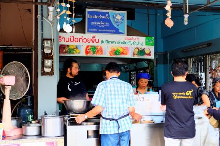 ป้อก๋วยจั๊บ เป็น 1 ในร้านดัง จ.ลำปาง ที่ทั้งคนลำปางเองและนักท่องเที่ยวต่างก็แวะเวียนมากินเสมอ เค้าว่ากันว่าดังที่สุดในจังหวัด เป็นอาหารเช้ายอดฮิต เช้าๆ ได้ซดน้ำร้อนๆ ของก๋วยจั๊บรสชาติเข้มข้น เส้นเหนียวหนึบ แค่นี้ก็ฟินเติมพลังพร้อมออกเดินทางต่อแล้ว ร้านนี้ตั้งอยู่ตรงสถานีรถไฟ จ.ลำปาง เลยค่ะ หาง่ายมากร้านเปิดตั้งแต่เวลา 05.30-10.30 น.