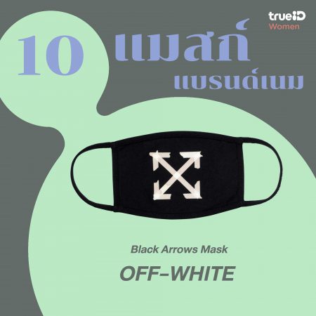 ถ้าพูดถึงแมสก์ก็คงต้องพูดถึงแมสก์จากแบรนด์ Off-White เลยล่ะค่ะ แมสก์จากแบรนด์นี้ฮิตมากๆ สายแฟที่อยากคูลต้องใส่แมสก์ Off-White เลยนะคะ ส่วนรุ่นนี้เป็นรุ่นที่มีการออกแบบเป็นโลโก้ลูกศร เอกลักษณ์ของแบรนด์ ใส่แล้วก็รู้เลยว่าเป็นของ Off-White แน่นอนค่ะ