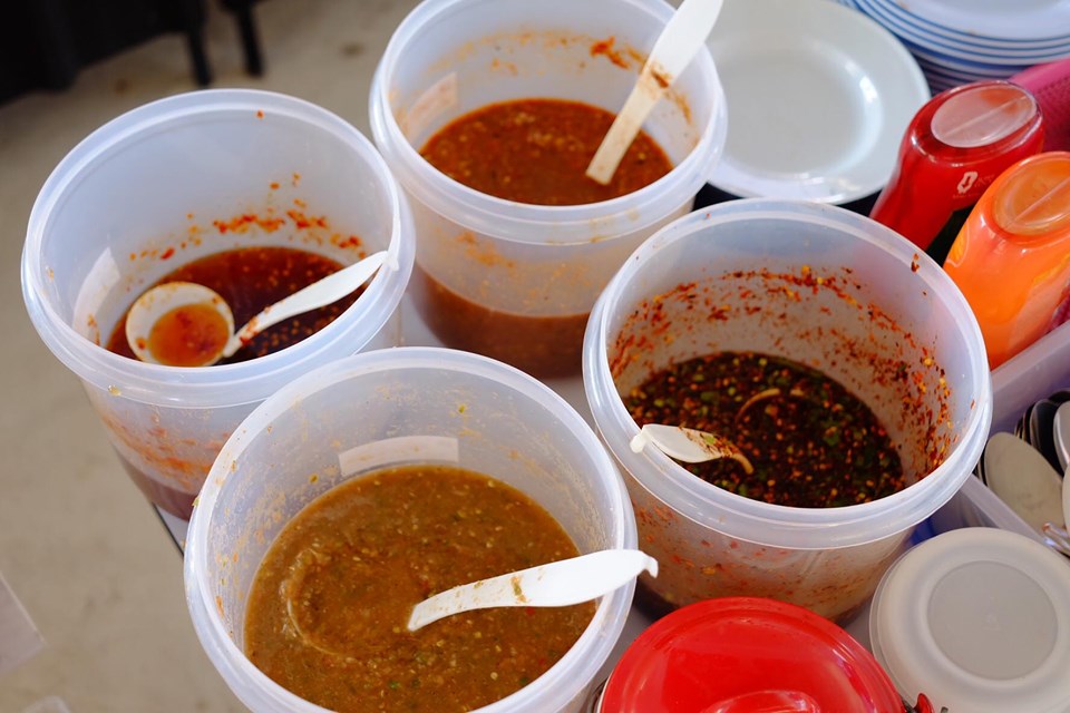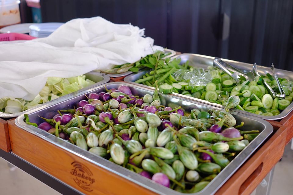 “หมูบิน ข้าวหมูทอด” ผักฟรี น้ำพริกฟรี น้ำพริกหรือซอสมีประมาน5-6อย่าง ผักสดมาก มีผักให้เลือกเยอะมาก ที่สำคัญข้าวฟรี