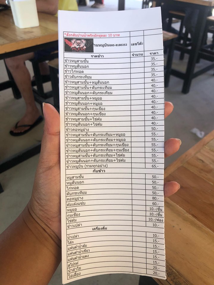 “หมูบิน ข้าวหมูทอด” มันคือข้าวหมูทอด ที่เริ่มต้นที่ราคา 35 บาท 2 อย่าง 40 บาท มีเมนูให้เลือกหลายอย่าง