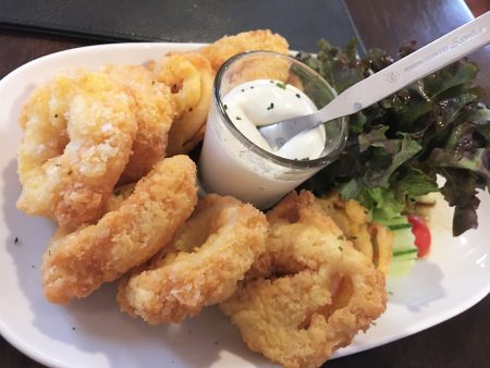 และจานสุดท้าย คารามารี หรือ ปลาหมึกชุบแป้งทอด จานนี้ต้องทานตอนร้อนๆ จึงจะดี ทิ้งไว้นานหมึกจะเหนียว ตัวแป้งค่อนหนา มีความกระด้าง ยังไม่กรอบถึงใจนัก