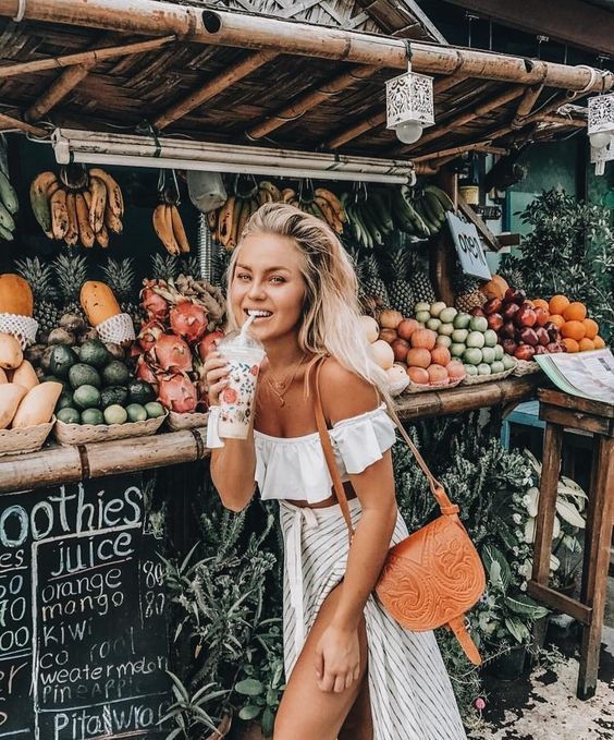 ไอเดียโพสท่าถ่ายรูป นี้บอกเลยว่าถนัด เรื่องของกินกับสาวๆ เป็นของคู่กันอยู่แล้วเนอะ แนะนำว่าให้เป็นของกินประจำถิ่นของที่นั้นๆ ด้วยก็จะดีมากค่ะ ก่อนไปเที่ยวต่างจังหวัดหรือต่างประเทศ ลองดูว่าแต่ละที่มีของกินอะไรน่าสนใจบ้าง แล้วก็จัดมุมถ่ายรูปดีๆ รับรองว่าสวยปัง
