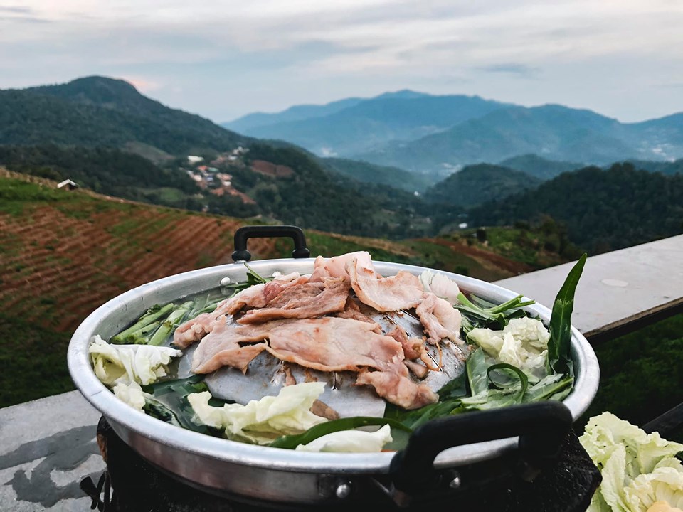 บรรยากาศดีขนาดนี้ กิจกรรมที่ไม่ควรพลาดคือการนั่งชิวปิ้งหมูกระทะ โดยที่ ภูดอย โฮมสเตย์ มีบริการชุดละ 450 บาท พร้อมน้ำแข็ง 1 ถัง ทานสองคนกำลังพอดีค่ะ หรือถ้าอยากทานอาหารตามสั่งแบบง่ายๆ ทางที่พักก็มีบริการค่ะ และสำหรับอาหารเช้าจะเริ่มตั้งแต่ 7.00 น. มีขนมปัง กาแฟ ข้าวต้ม บริการค่ะ