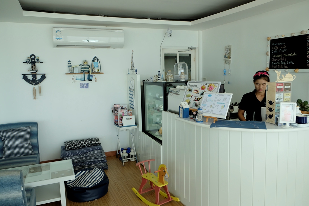 “ปลาทู เรสเตอรองท์ คาเฟ่” คาเฟ่หลังสีขาว สุดน่ารัก อยู่ริมทะเล อยู่ติดกับร้านปลาทูเรสเตอรองท์ ซึ่งเป็นเจ้าของเดียวกันร้านอาหารปลาทูนั่นเองค่ะ เป็นเล็กๆ แต่ทำเอาหลังรักเต็มๆ ภายในร้านแต่งโทนสีขาวฟ้า ให้อารมณ์ทะเล๊ทะเล