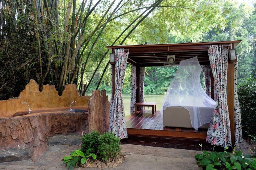 “River Tales Resort ” อยู่ที่แก่งกระจาน จ.เพชรบุรี ค่ะ ที่นี่ดังจากการเป็นลานกางเต้นท์ติดแม่น้ำที่กลุ่ม จุดกางเต้นท์ทุกคนต้องรู้จัก แต่ที่นี่ไม่ได้มีบริการแค่พื้นที่กางเต้นท์นะคะ ยังมีที่พักที่มีความเก๋สุดๆ อยู่ริมแม่น้ำอีกด้วย ที่พักของเราคืนนี้ อยู่ริมน้ำเลยค่ะ ความเก๋มันอยู่ตรงที่มีที่แช่น้ำ เราเรียกมันว่า จากุชชี่ ส่วนตัวสุดๆ นั่งแช่น้ำเย็นๆ มองดูแม่น้ำไป ฟังเพลงเบาๆ โอ๊ยยย!! มีความสุขสุด!!