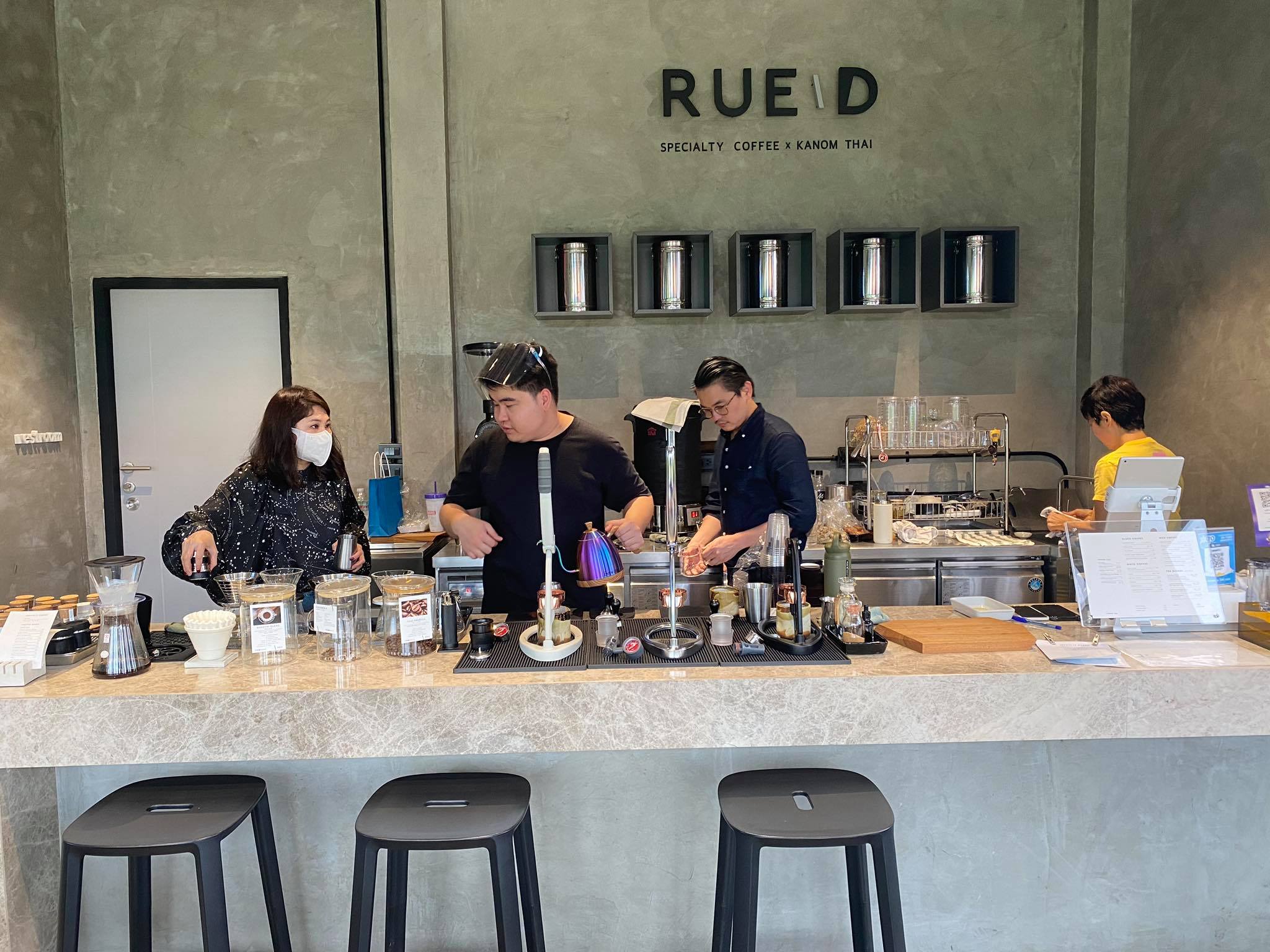 ร้านนี้บังเอิญขับรถผ่านพอดี ด้วยดีไซน์ร้านสะดุดตาทำเอาเราต้องกลับรถเพื่อมาลองของสักหน่อย ความเก๋ของร้านนี้อยู่ที่ขนมร้านนี้เป็นขนมไทยจ้า ชื่อร้านก็ไทยๆ ชื่อว่า ฤดี (RUE/D)