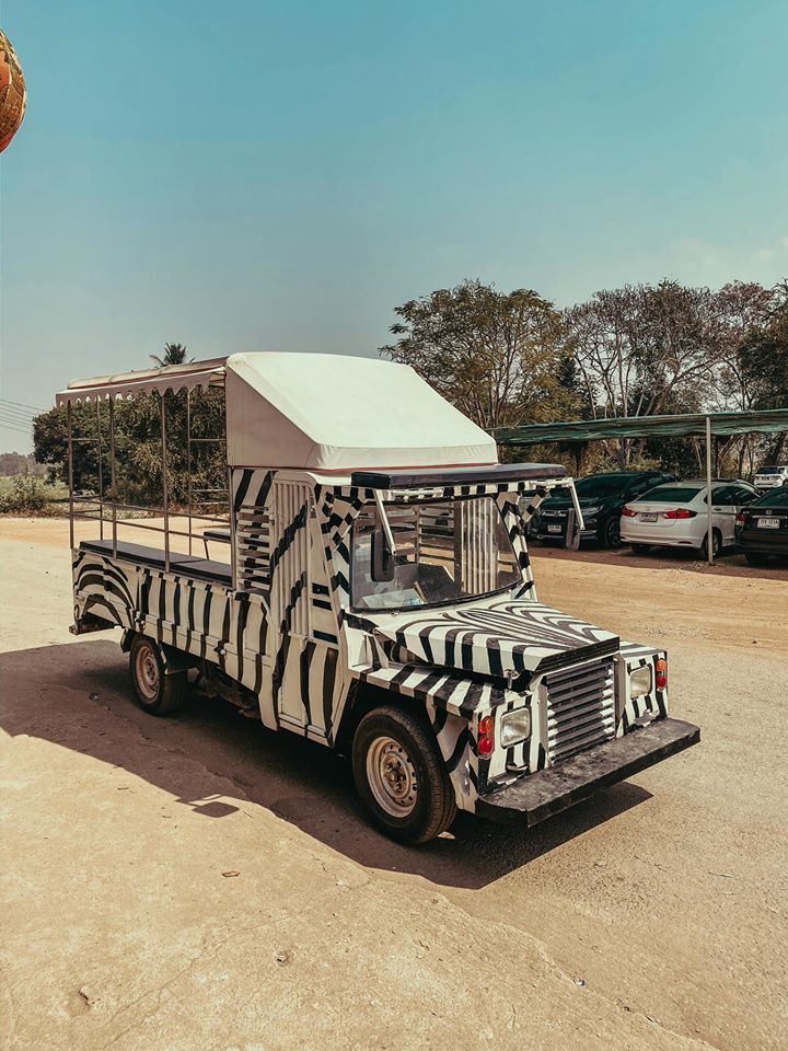 เข้าจะพาเรานั่งรถแบบในรูป เพื่อเข้าไปหาน้องยีราฟค่ะ ระหว่างทางเจ้าหน้าที่ก็จะอธิบาย และสิ่งที่คสรปฎิบัติเมื่ออยู่กับยีราฟ คสรตั้งใจฟังนะคะ เพื่อความปลอดภัยของตัวเองค่ะ