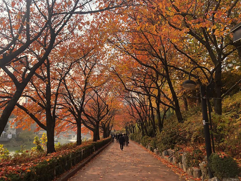เดินชมใบไม้เปลี่ยนต่อกันยาวๆ ไปกันที่ Seokchonhosu Lake ค่ะ ที่นี่บรรยากาศดีมาก มีคนมาเดินออกกำลังกาย เดินชิวกันเยอะเลย นั่งดูใบไม้เปลี่ยนสีท่ามกลางอากาศเย็นๆ แค่นี้ก็มีความสุขที่สุดแล้วเนอะ