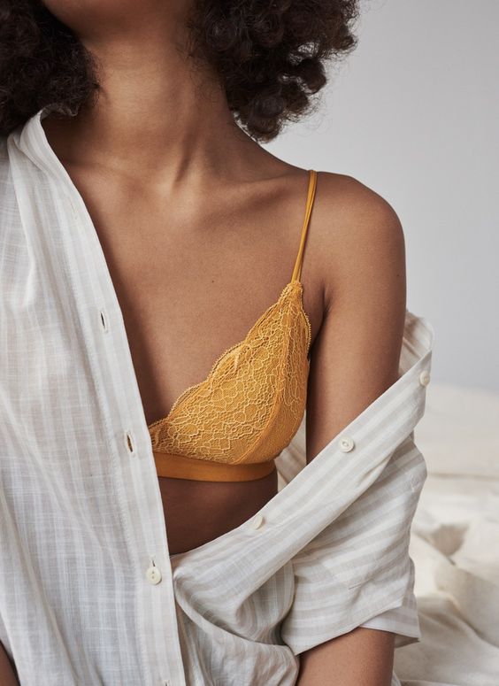 จริง ๆ แล้วสาวอกเล็กเนี่ยสามารถสร้างลุคเซ็กซี่ได้ง่ายมาก ๆ เลยนะคะ เพื่อน ๆ ลองใส่ เสื้อยืด เสื้อกล้าม หรือ เสื้อเชิ้ตหลวม ๆ คู่กับบราลูกไม้ สัญลักษณ์ของความเซ็กส์ซี่ดูสิ เลือกเอาแบบคอกว้างเปิดเนินอกเบา ๆ แล้วโชว์บราลูกไม้กันแบบจะ ๆ ไปเล้ย รับรองว่าออกมาแซ่บเวอร์!