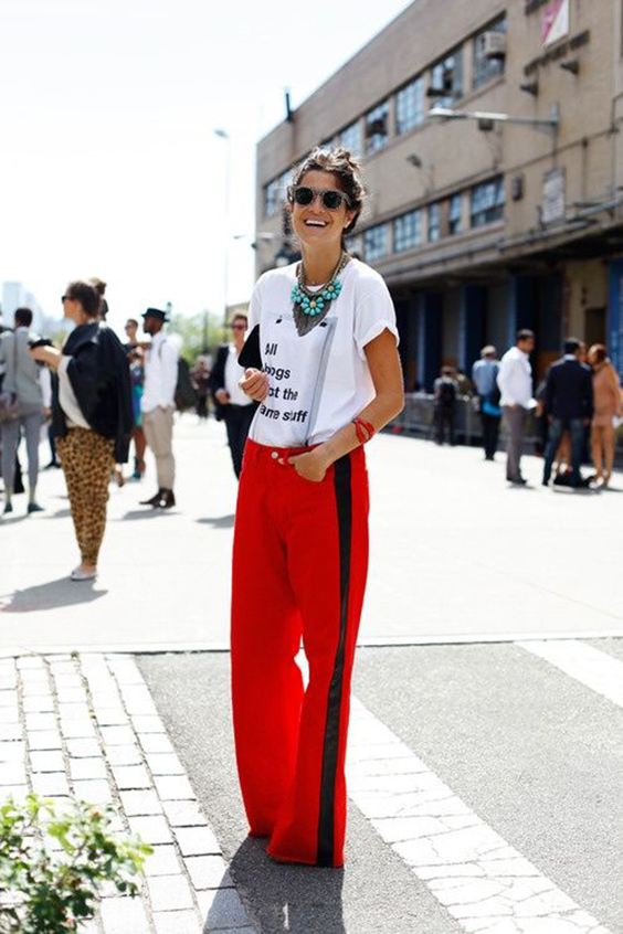 3. กางเกง “สีแดง” กับเสื้อยืดสีขาวคือความพอดีที่ลงตัวน่ามอง