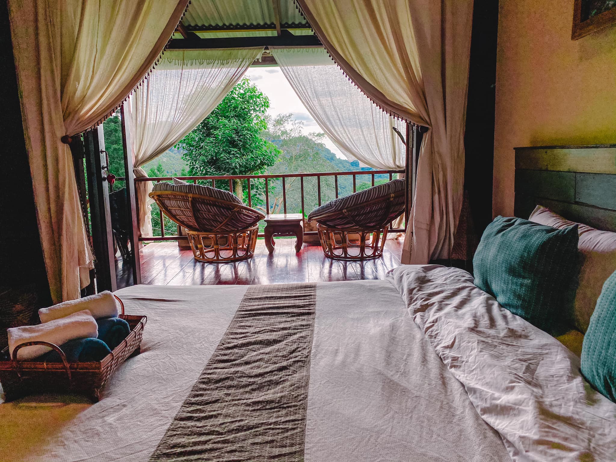 บ้านน้อยในป่าใหญ่ คงไม่มีคำไหนเหมาะเท่าคำนี้แล้วสำหรับ ทโล้ โฮมสเตย์ เชียงใหม่ (Taloh Homestay ChiangMai) ภาพเปสีขาวมองออกไปเห็นวิวเขาสุดลูกตา มองจากภาพก็ไม่เท่ากับมาสัมผัสด้วยตัวเองจริงๆนะ