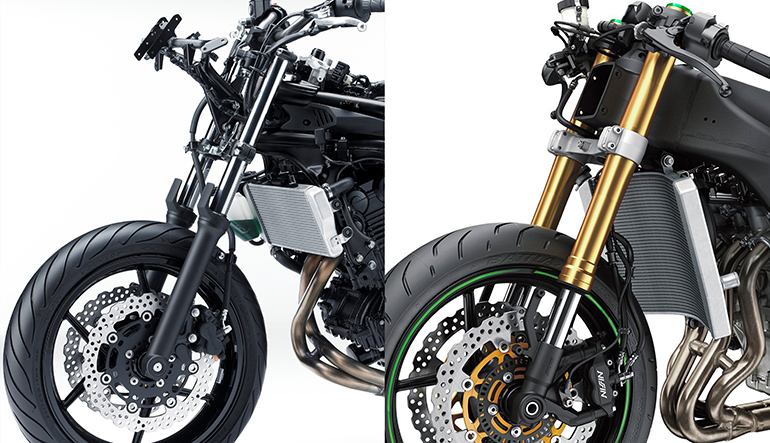 อีกหนึ่ง ที่น่าจะเป็นข้อสงสัย ที่หลายคนน่าจะยังไม่รู้ ก็คือตัวโช๊คอัพของระบบกันสะเทือนหน้าในมอเตอร์ไซค์ ที่มีอยู่ด้วยกัน 2 แบบ คือแบบ ธรรมดา หรือที่เรียกว่า โช๊คอัพ แบบ Telescopic (เทเลสโคปิค) ที่เราเห็นมาตั้งแต่อ้อนแต่ออก และแบบหัวกลับ Upside Down (อัพไซด์ ดาวน์) ที่มอเตอร์ไซค์รุ่นใหม่ๆ สมรรถนะสูงมีมาให้ใช้กัน