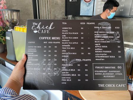 ร้าน The Chick Cafe อยู่ที่ ต.ไทรน้อย จ.นนทบุรี ค่ะ เป็นร้านเล็กๆ แต่ให้ความรู้สึกอบอุ่นมาก ตัวร้านเป็นกระจก มีสวนเล็กๆ ข้างๆร้าน บริการน้ำและขนมหลากหลายเมนู
