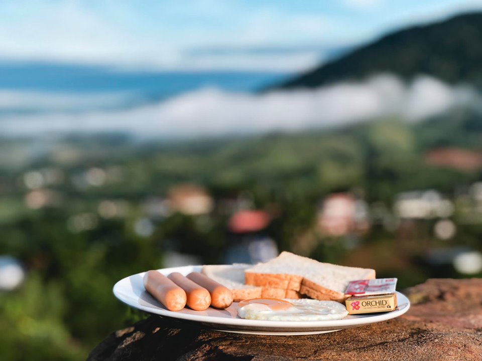 สำหรับเรื่องอาหารการกิน ตอนเช้าจะมีบุฟเฟ่ย์ พวกข้าวผัด ข้าวต้ม ไข่ดาว ไส้กรอก ขนมปัง ค่ะ