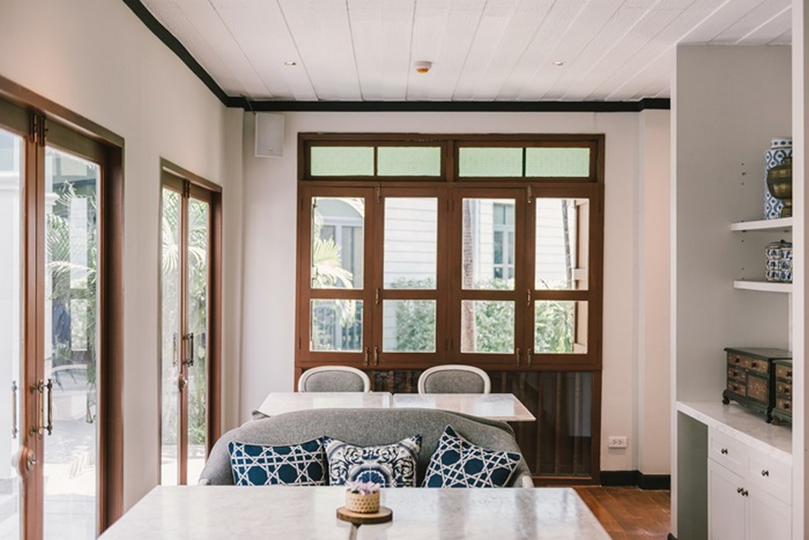 ส่วนชั้นล่างได้ดัดแปลงเป็นห้องอาหารที่ตกแต่งไว้อย่างสวยงาม แต่ยังคงรักษาไว้ซึ่งสถาปัตยกรรมดั้งเดิม เพื่อส่งมอบความรู้สึกของการย้อนยุคไปสู่อดีตที่เปี่ยมล้นคุณค่าทั้งทางศิลปวัฒนธรรมแห่งสยามในยุคสมัยนั้น และยังมอบความสงบร่มเย็นทางด้านจิตใจให้กับผู้มาเยือน ด้วยความร่มรื่นของต้นไม้นานาพันธุ์ รวมถึงต้นไทรอายุกว่า 200 ปี ที่หยัดยืนให้ความความรื่นรมย์แก่ผู้อยู่อาศัยมาหลายชั่วอายุคน