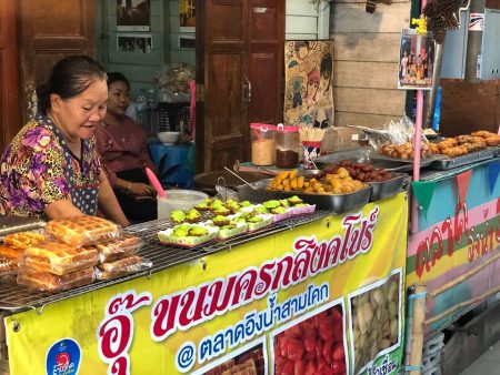 จากนั้นเราก็มุ่งตรงไปจุดหมายแรกของเราคือ ตลาดอิงน้ำสามโคก ที่จังหวัดปทุทธานี ตลาดบรรยากาศน่ารัก มีของกินให้เลือกซื้อมากมาย ตามแบบวิถีชาวบ้านที่เรียบง่าย ของที่ขายก็จะแนวของยุคเก่าๆ ไม่ว่าจะเป็นพวกของเล่น หรือขนม เห็นแล้วนึกถึงสมัยเด็กๆ สำหรับของเด็ดของตลาดนี้คือข้าวหลามกะลามะพร้าว หวานมันกำลังดี ตลาดเปิดทุก เสาร์ และอาทิตย์ แนะนำว่าให้มาช่วงเวลา 10.00-14.00 น.ค่ะ