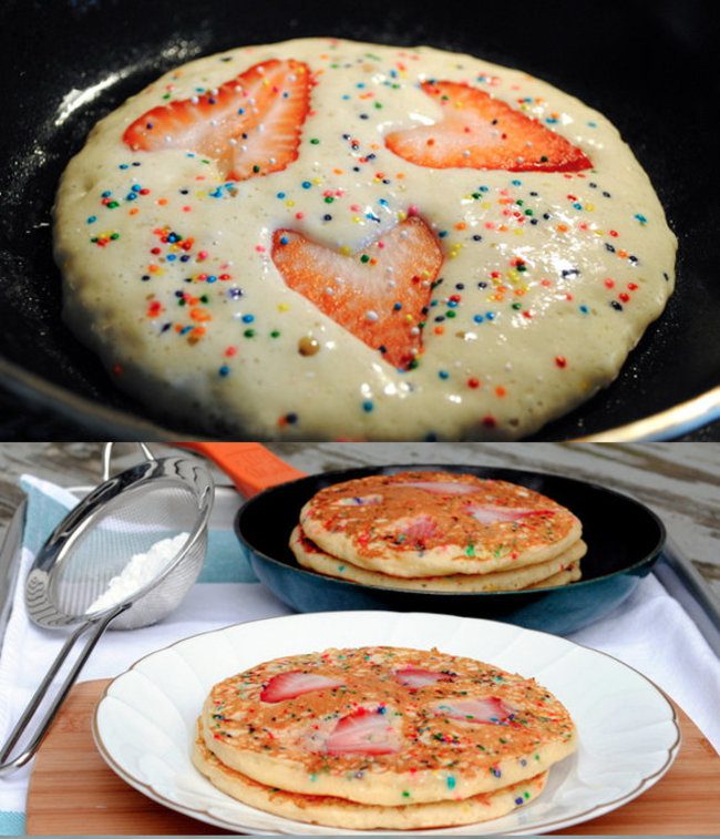 ต้อนรับวัน วาเลนไทน์ ด้วย แพนเค้ก สตรอว์เบอรี่รูปหัวใจ