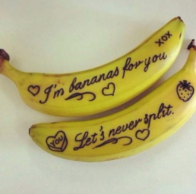 กล้วยบอกรัก เขียนข้อความน่ารักๆ บนกล้วย แล้วมอบให้เป็นอาหารเช้าเพื่อสุขภาพได้เลย .. เธอกินกล้วยของฉัน!!