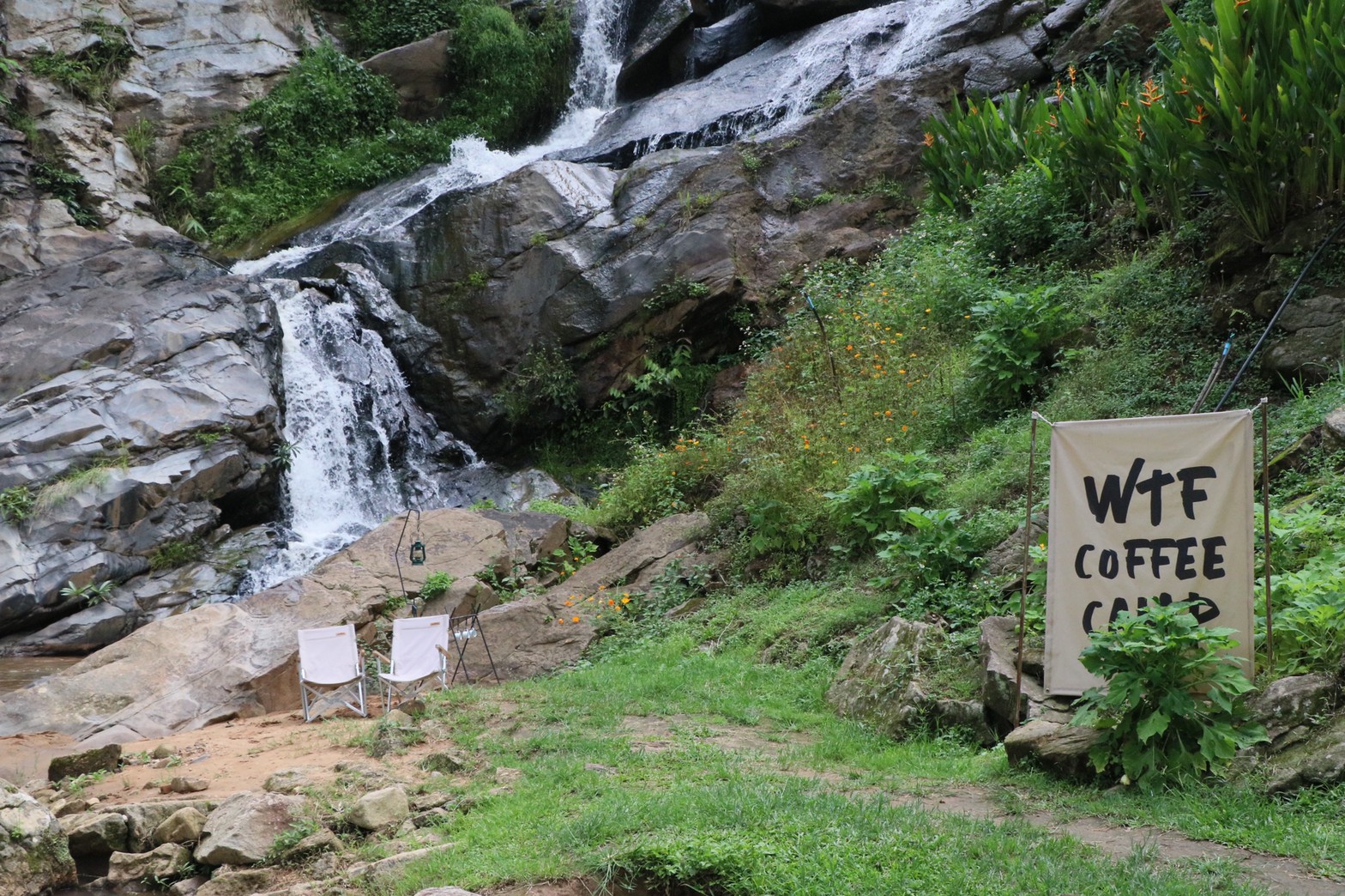 WTF Coffee Camp ร้านกาแฟลึกลับกลางหุบเขา อ.แม่ริม จ.เชียงใหม่ ตั้งอยู่ในกังสดาล รีสอร์ท บรรยากาศร้านคือดีเวอร์ เป็นวิวน้ำตก ชิวสุดให้ความรู้สึกเหมือนมาตั้งแคมป์เบาๆ เอาเป็นว่าถ้าใครมาเที่ยวม่อนแจ่มอย่าลืมแวะร้านนี้กันนะ เต็ม 10 ไม่หัก !!