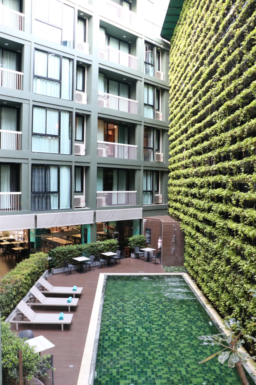 โรงแรม X2 Vibe Chiang Mai Decem Hotel อยู่ใกล้ห่าง Maya แบบเดินไปช้อปสวยๆเลยจ้า แถมยังเดินไปนิมมานได้อีก บอกเลยว่าทำเลดี ไม่พลุกพล่านและเงียบจนเกินไป โรงแรมตกแต่งโทนสีเขียวมิ้นท์ มุมที่ห้ามพลาด!!คือสระว่ายน้ำที่อยู่ด้านในที่มาพร้อมสวนแนวตั้ง คือดีงาม ถ่ายรูปสวย เห็นเป็นโรงแรมเล็กๆ แต่มุมเก๋ๆเยอะอยู่ ห้องพักก็น่ารัก