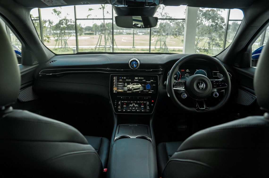 ห้องโดยสารเต็มเปี่ยมความหรูหราและอเนกประสงค์ ด้วยพื้นที่ใช้สอยมากที่สุดในรถยนต์เซกเมนต์เดียวกัน ตกแต่งอย่างประณีตทุกรายละเอียด ด้วยหนังแท้เกรดพรีเมียมไม้แท้ และคาร์บอนไฟเบอร์ อีกทั้งยังเป็นครั้งแรกที่มีการใช้นาฬิกาดิจิทัล แทนนาฬิกาทรงรีแบบดั้งเดิม สามารถแสดงข้อมูลได้หลากหลาย ติดตั้งหน้าจอแสดงข้อมูลอเนกประสงค์แบบทีเอฟที (TFT: Thin-Film Transistor) ขนาด 12.3 นิ้ว ด้านหน้าผู้ขับ พร้อมติดตั้งทัชสกรีนแบบคู่ บริเวณกลางแดชบอร์ด โดยจอบนมีขนาด 12.3 นิ้ว และจอล่างขนาด 8.8 นิ้ว ใหญ่สุดเท่าที่เคยติดตั้งในรถยนต์ มาเซราติ ครบทุกอรรถรสของการขับ ด้วยเครื่องเสียง Sonus Faber จากอิตาลี พร้อมออปชั่นลำโพงแบบ 14 ตำแหน่ง และ 21 ตำแหน่ง