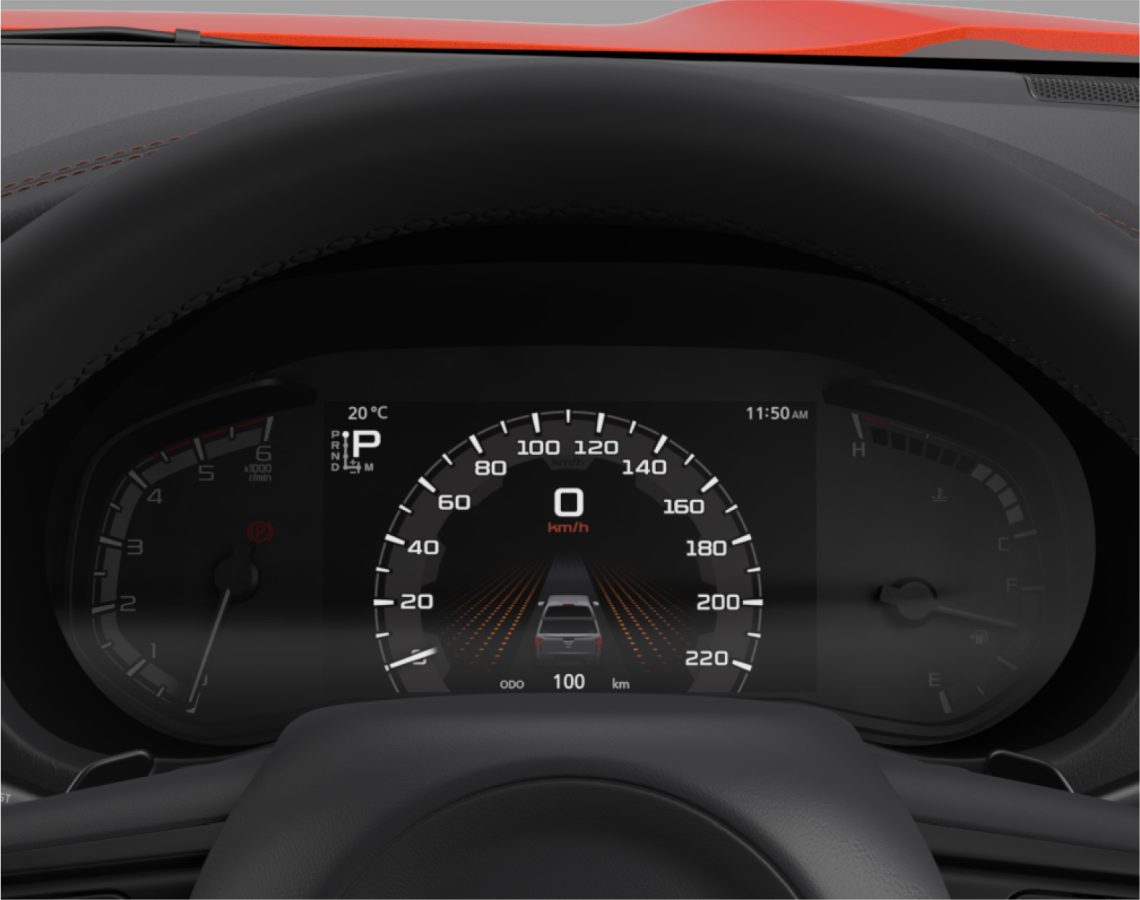 ยกระดับเทคโนโลยีความสะดวกสบาย และความปลอดภัยอย่างครบครัน มาพร้อมหน้าจอ MID แบบสีขนาด 7 นิ้ว พร้อมด้วย Vehicle Tilt information เพิ่มความสะดวกสบายด้วยช่องเสียบ USB-C หน้าจอCenter Display ขนาด 8” และ 9” ที่รองรับระบบ Apple CarPlay และ Android Auto แบบไร้สายตอบรับทุกความต้องการของคนยุคใหม่ได้อย่างแท้จริงได้รับการติดตั้งเทคโนโลยีความปลอดภัยขั้นสูงเพิ่มเติม เพื่อมอบความปลอดภัยยิ่งขึ้น อาทิ ระบบช่วยเบรกอัตโนมัติ (AEB), ระบบเตือนการชนด้านหน้า (FCW), ระบบช่วยเตือนการเหนื่อยล้าขณะขับขี่ (DAA) และระบบช่วยเบรกเมื่อมีรถในจุดอับสายตาขณะถอยหลัง (RCTB)