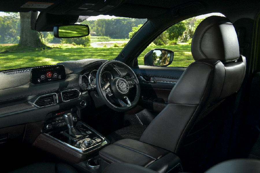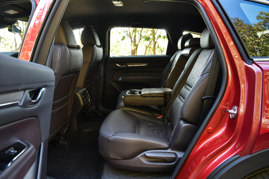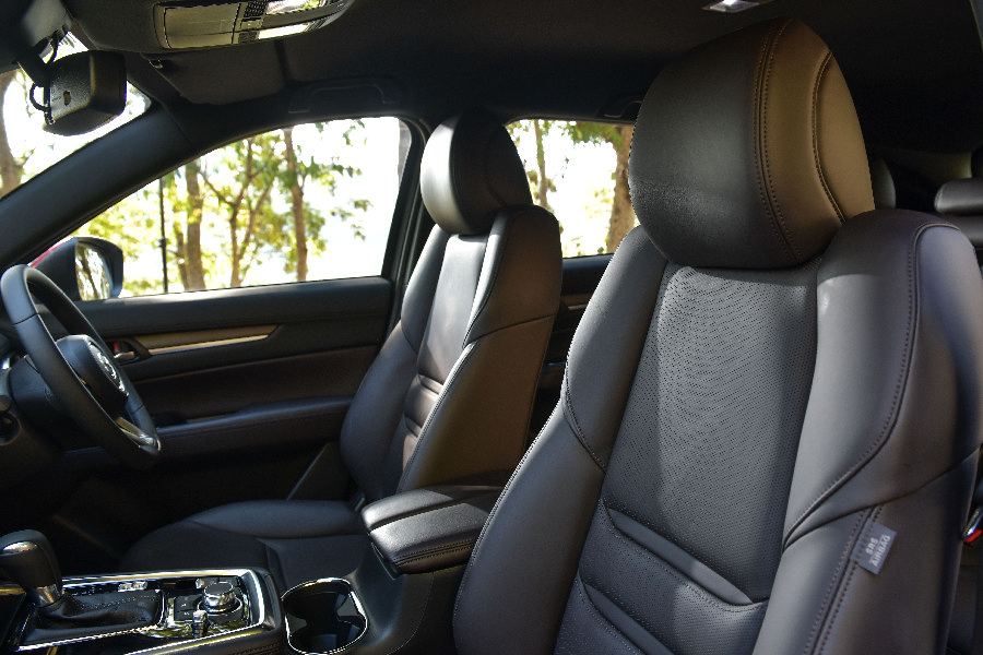 เมื่อได้ขึ้นไปนั่งความรู้สึกแรกคิดว่ามีความเหมือนกับตัว CX-5 ซึ่งโดยส่วนตัวอยากจะให้มีความต่างเพราะไหนๆมันก็คนละรุ่นกัน แต่เมื่อได้ไปลองนั่งในแถวที่2 และ 3 อันนี้แหละถึงจะได้รู้ถึงความต่างที่มีกว้าง และยืดยาวกว่าชัดเจน เมื่อเทียบกับ CX-5 โดยมีรูปแบบของห้องโดยสารที่นั่งให้เลือก ทั้งแบบ 3 แถว 6 ที่นั่ง และแบบ 3 แถว 7 ที่นั่ง สำหรับห้องโดยสารแบบ 3 แถว 6 ที่นั่ง มาพร้อมเบาะที่นั่งแถวสองแบบ Exclusive Captain Seat 2 ที่นั่ง แยกซ้าย-ขวา อัดแน่นไปด้วยอุปกรณ์อำนวยความสะดวกกับคอนโซลกลางที่เป็นทั้งกล่องเก็บของ ที่วางแก้วน้ำ ช่อง USB สำหรับชาร์จไฟ 2 ช่อง