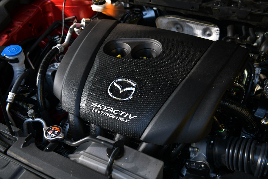 อย่างที่บอกในตอนแรกว่าได้ขับรุ่น 2.5 SP ที่เป็น เครื่องยนต์แบบสกายแอคทีฟเบนซิน 2.5 ลิตร (SKYACTIV-G 2.5) ที่มีแรงม้าสูงสุดถึง 194 แรงม้า ต่อ 6,000 รอบต่อนาที และแรงบิดสูงสุดถึง 258 นิวตัน-เมตร ต่อ 4,000 รอบต่อนาที ให้อารมณ์แบบผู้ดีไม่มีกระชากเหมาะสมกับบุคลิกของตัวรถที่ไม่ได้ออกแบบมาในแนวซิ่ง แต่ก็ให้อัตราเร่งที่รับได้โดยเฉพาะในโหมด Sports ที่มีรอบเครื่องยนต์มารอให้เรียกใช้อย่างต่อเนื่อง จังหว่ะการเปลี่ยนเกียร์ต่อเกียร์ไม่ว่าจะขึ้นหรือลง ทำได้นิ่มนวลไม่กระชาก อันนี้ดีจริง